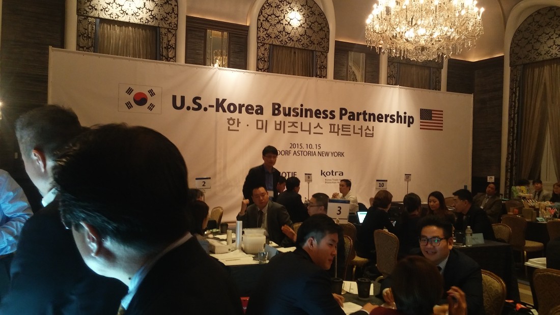 03-25 2016 비즈니스 통역 | KOTRA 한 미 비즈니스 파트너쉽 WHEN: 2015년 10월 15일 WHERE: Wardof Astoria, New York, NY DETAIL: 박대통령 미국 방문차 한- 미 비즈니스 파트너쉽 약 50개의 대한민국 중소기업이 참여하여 현지 바여들과 상담하는 시간이였습니다. 가이드매니아가 이날 한 기업의 통역 업무를 맡아 수행했습니다.