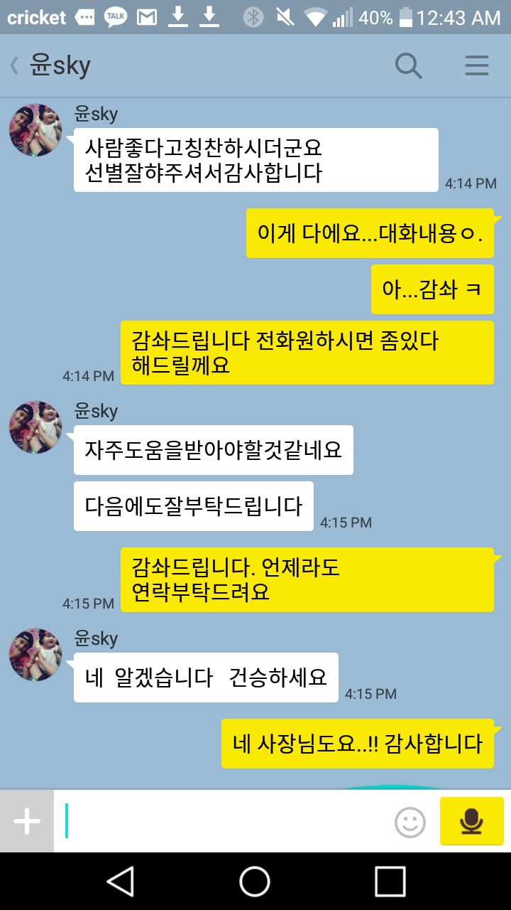 08-22 2016 Palau 파견 통역원에 만족하신 고객의 표현 윤석환 고객님께서 부동산 업무때문에 저희에게 문의주셔서 연결시켜드린 통역원님이 맘에 드셔서 만족함으로 남기신 내용입니다. 가이드매니아는 실제 현장업무에 오랜기간동안 직접 수행한 결과 나름대로 비즈니스 중심의 업무를 잘 파악하므로 각 개인에게 적합한 통역/가이드분들을 섭외해드립니다