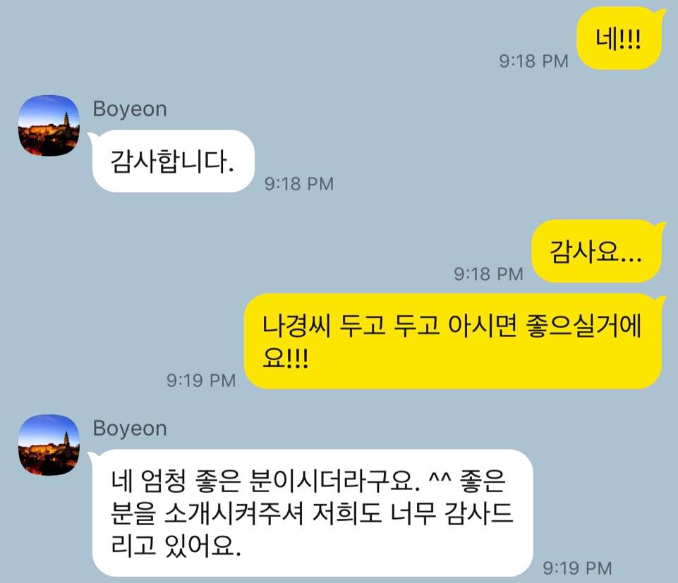고객님 아드님까지 생각하셔서 또래의 아드님까지 보스턴에 데려 가셨다 하니 나경님의 열정과 자상히 챙겨주심