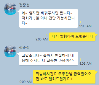 고객님 정산 완료하시는 마무리까지 잘 도와드리겠습니다. 마무리라 하니 왠지 아쉽습니다. ㅠㅠ