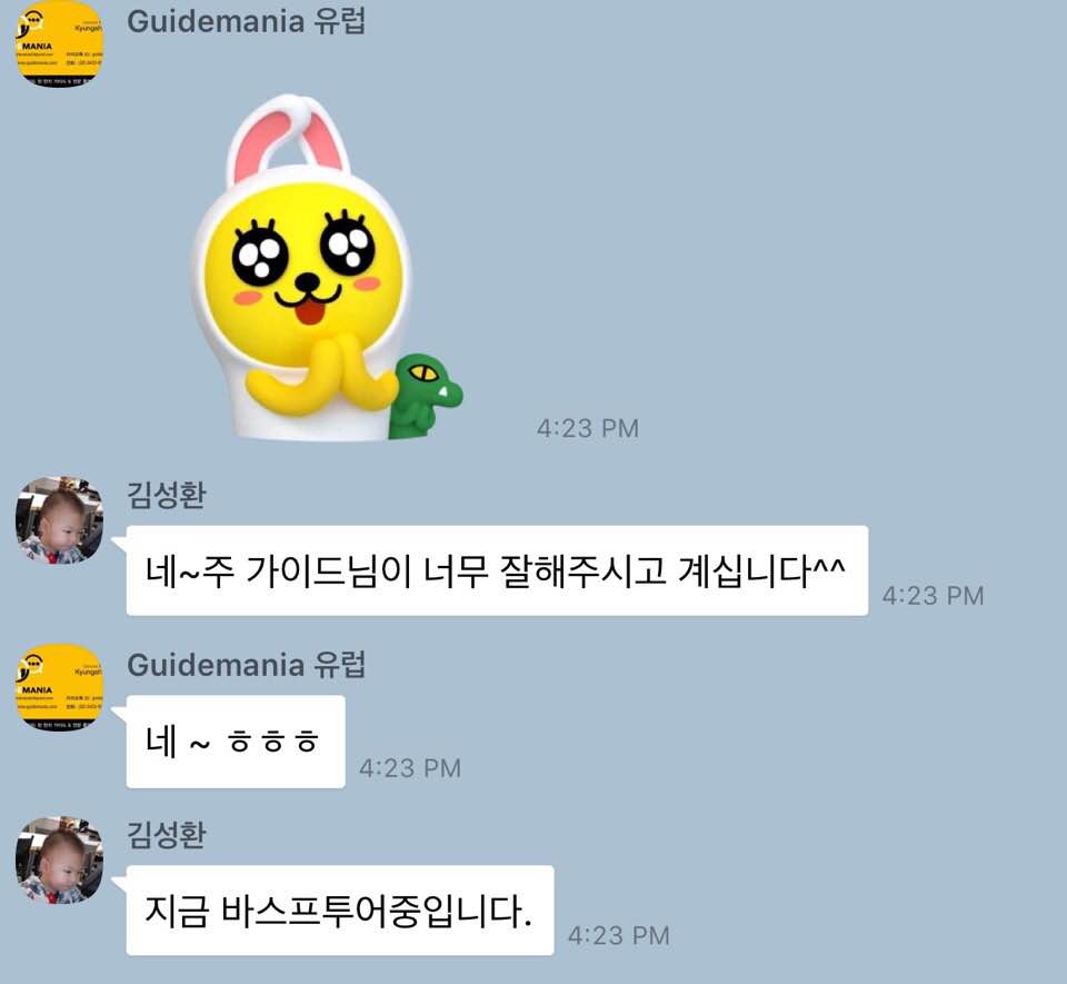 독일 프랑크푸르트에서 주영* 가이드님 통역 및 차량 가이드 서비스를 이용하신 고객님의 실시간 생생 리뷰 랍니다.