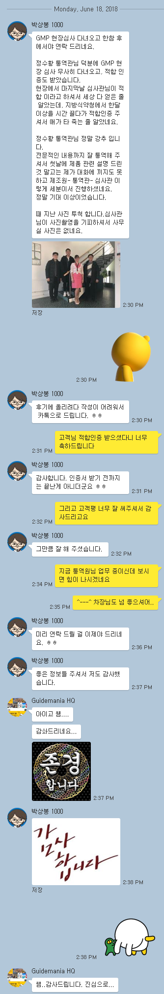 **황 통역관님의 전문화된 심사 진행과, 차별화된 통역으로 GMP 심사 통과후,