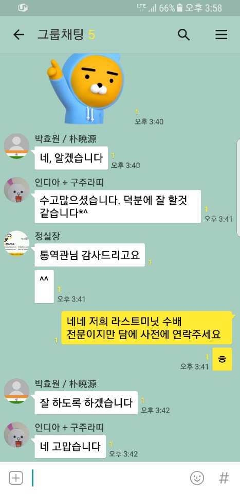지금쯤 뭄바이서 만나셨겠네요. 수준 높은 통역으로, 사업에 좋은 성과 가지시고 돌아가실거라 확신합니다.~