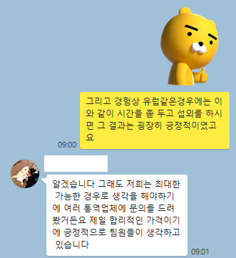 다른 업체에도 통역비용을 알아보신 고객님께서 "가이드매니아 가격이 제일 합리적이었다" 고 남겨주신 메세지입니다.