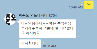 1) 인도네시아의 김동기 님 통역 이용후 남겨주신 고객님 후기 입니다.